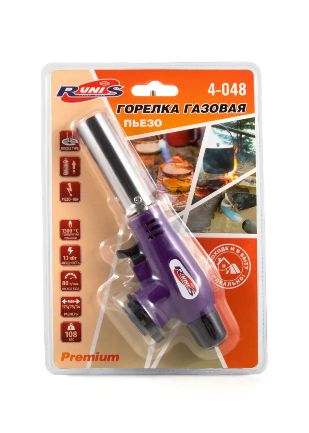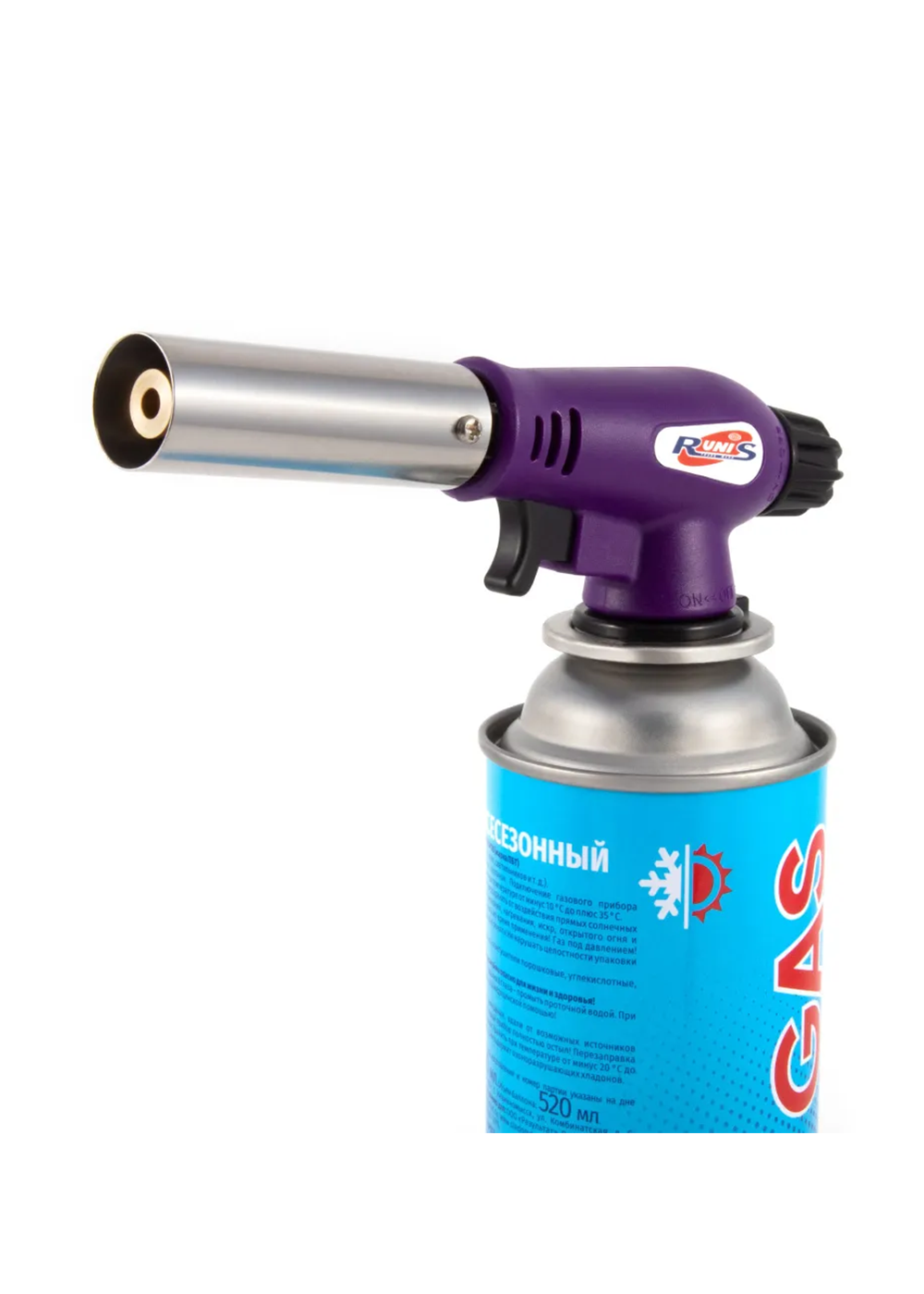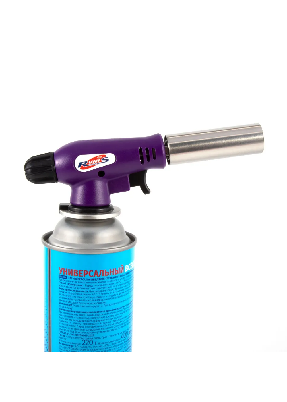 Газовая горелка - компактный, эргономичный газовый прибор, который используется в качестве источника направленного пламени, температура пламени в зоне основного факела достигает 1300 градусов по C.Горелка работает на газовом топливе следопыт в стандартных газовых баллонах PF-FG-220 (220 гр) с клапаном цангового захвата.