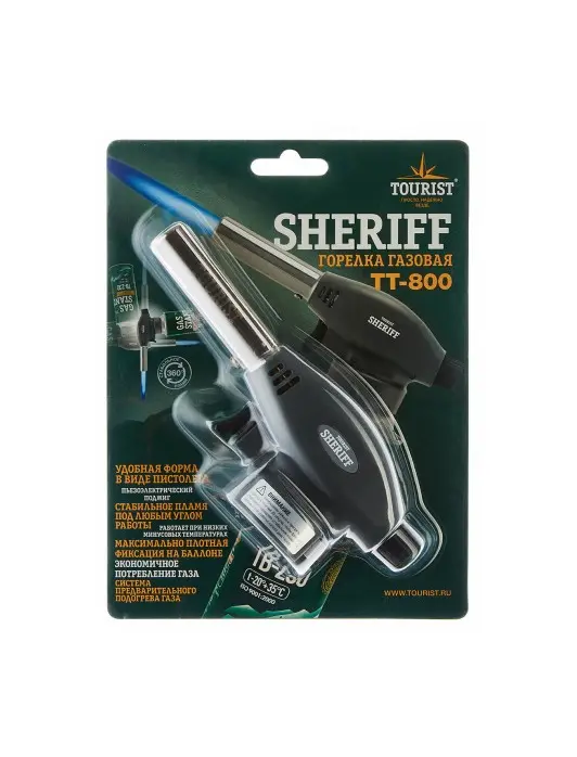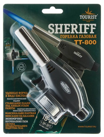 Газовая горелка с пьезоподжигом TOURIST SHERIFF TT-800 позволяет выполнять различные виды работ. Благодаря специальной форме максимально плотно фиксируется на баллоне. Удобство использования обеспечено наличием пьезоподжига. Для исключения воспламенения жидкого газа при вращении или перевороте работающей горелки используется технология предварительного подогрева газовой смеси.