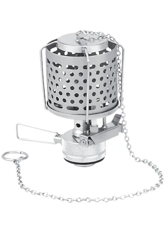 Используется как источник света и тепла в походах, на кемпинге, охоте, рыбалке и т.п. Особенности: В качестве источника топлива используются газовые резьбовые баллоны. Очень легка и компактна Металлический плафон, благодаря которому лампа может использоваться как обогреватель небольшой площади. Снабжена пьезоподжигом. Компактно складывается в пластиковый кейс. Цепочка для подвешивания с кольцом. Дополнительные характеристики: Мощность: 0,52 кВт. Материал: Cплав алюминия и никеля. Размер: 110 х 60 х 60 мм. Расход газа: 38 г / час. Вес: 142г.