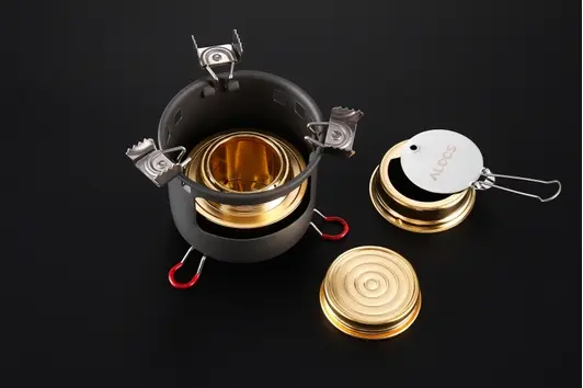 Спиртовая горелка Alocs CS-B13 с подставкой, которая выполняет функцию ветрозащиты. Весь набор компактно складывается и хранится в специальном чехле. Незаменимая вещь для любителей активного отдыха: кемпинга, альпинизма, пеших походов, рыбалки и путешествий. Выполнена из высококачественных материалов: твёрдого анодированного алюминия, нержавеющей стали и меди, что обеспечивает прочность, долговечность и устойчивость к коррозии.