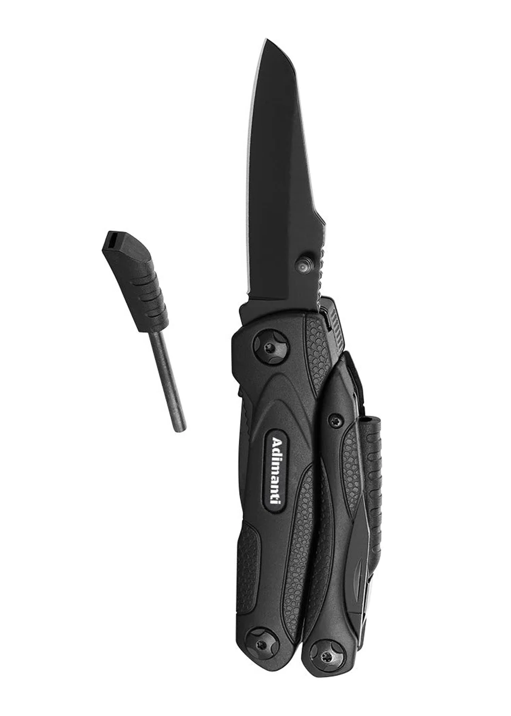Мультиинструмент складной Adimanti Sparkle AD1349 – это многофункциональный и компактный мультитул, который подходит для решения различных задач в туристическом походе, аварийной ситуации, на охоте и рыбалке. Благодаря своим небольшим размерам, его легко можно взять с собой в путешествие, положить в бардачок машины или рюкзак. Включает 11 инструментов, таких как плоскогубцы, пила, нож с прямым лезвием, отвертки, огниво, свисток, шило, инструмент для зачистки проводов, открывалка для бутылок и консервный нож. Рукоятки модели изготовлены из высококачественных материалов PA66 и стеклопластика, обеспечивающих комфортный захват и защиту от быстрого износа. Лезвие ножа изготовлено из нержавеющей стали 5CR15 с твердостью 54-56 HRC, что обеспечивает долговечность и устойчивость к коррозии. Этот мультитул станет надежным помощником в любых условиях, обеспечивая пользователя необходимыми инструментами для различных задач.