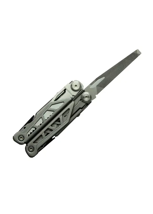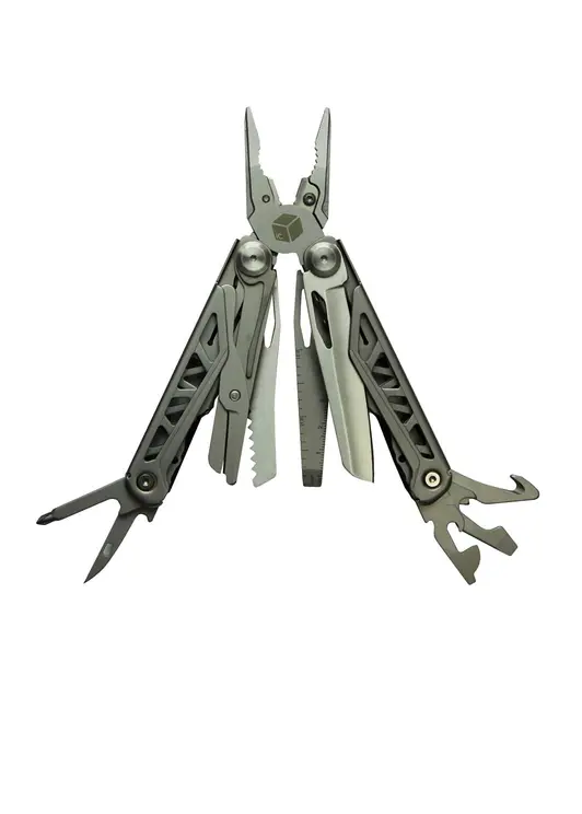 Компактный многофункциональный инструмент для повседневного использования. Облегченная конструкция, компактные размеры, прочные материалы, многофункциональность, удобный формат для ношения, надежная конструкция. Плоскогубцы, кусачки, нож, ножницы, открывалка для бутылок, плоская отвертка (малая), плоская отвертка (большая), консервный нож, крестообразная отвертка, шило, напильник, линейка, пила, инструмент для зачистки проводов, режущий крюк.