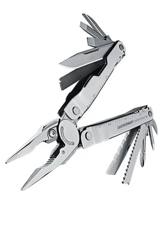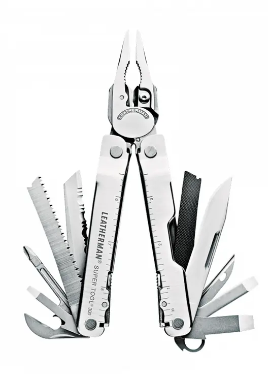 Мультитул Leatherman Super Tool 300 – супермощный инструмент с 19-ю полезными функциями. В знаменитой модели установлены самые мощные и большие плоскогубцы, а эргономичный дизайн скошенного верха ручек позволяет добраться до самых труднодоступных мест. Необязательно снимать перчатки, если необходимо использовать мультитул, так как боковые углубления облегчают открытие предметов.