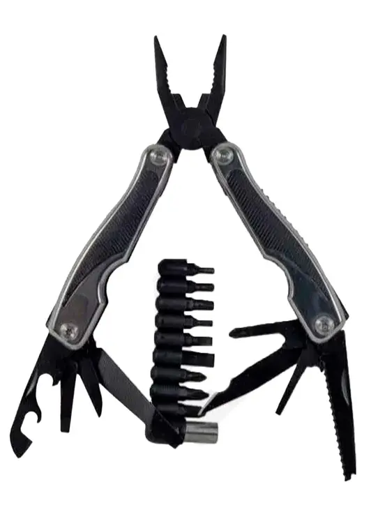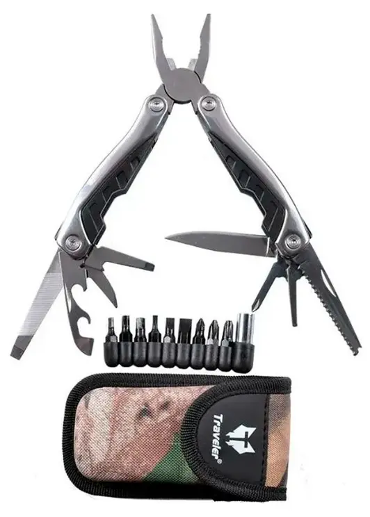 Универсальный мультитул MT842IFD-8G (чехол на пояс, 8 предметов набор бит). Представляет собой компактный многофункциональный инструмент, который можно применять для выполнения широкого набора функций. Основным достоинством этого прибора является высокая универсальность. При своих малых габаритах оно может заменить целый ящик различных узкоспециализированных инструментов. Мультипул изготовлен из комплектующих высочайшего качества, которые сделаны из прочной нержавеющей стали. Режущие кромки ножей остро заточены, а эргономичная рукоятка обеспечивает удобство и безопасность использования изделияМногофункциональный мультитул пригодится дома и на природе: для туризма, охоты, рыбалки, поэтому станет отличным подарком для мужчин на 23 февраля (день защитника Отечества), на день рожденияМультитул содержит следующие инструменты и приспособления:
