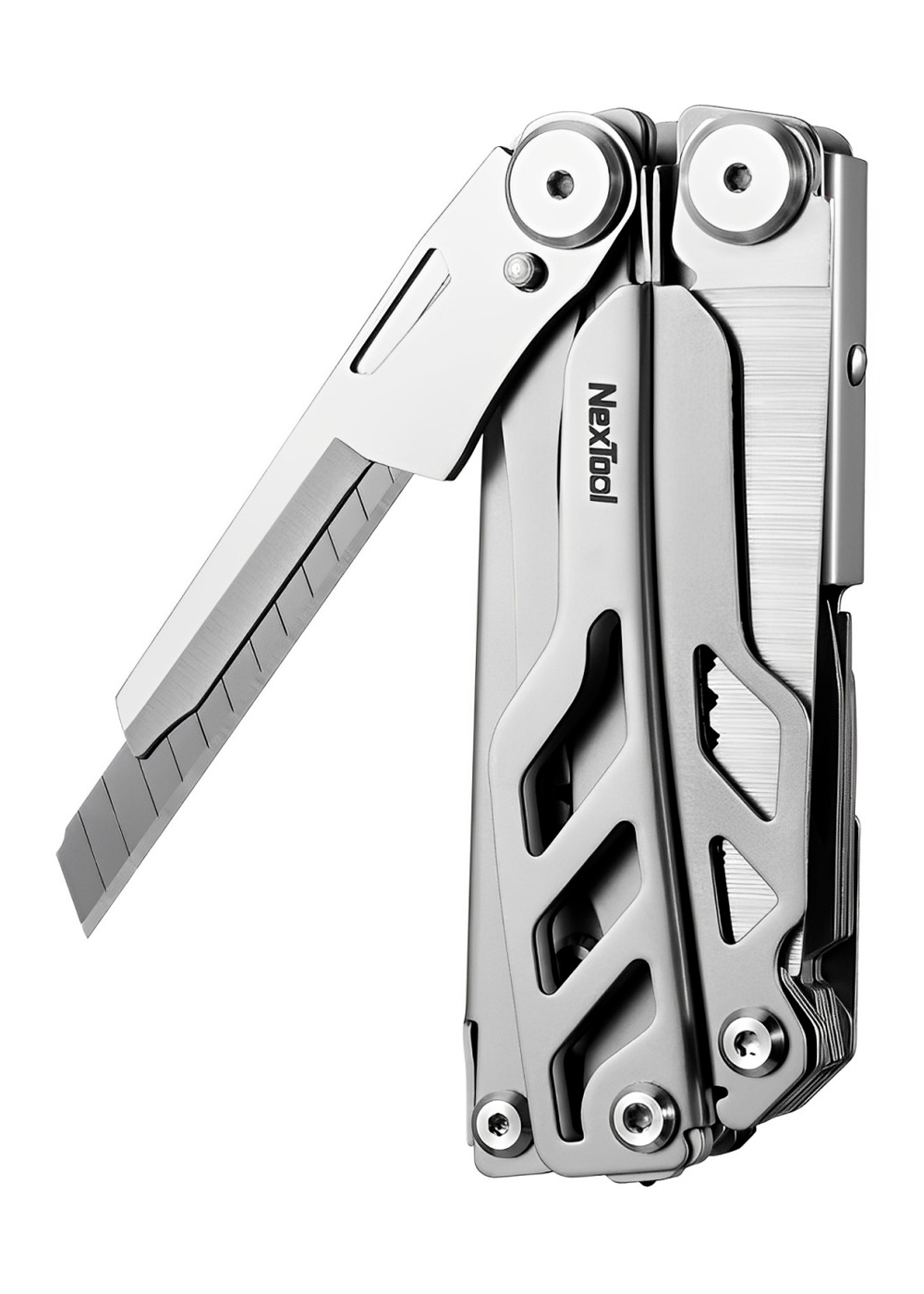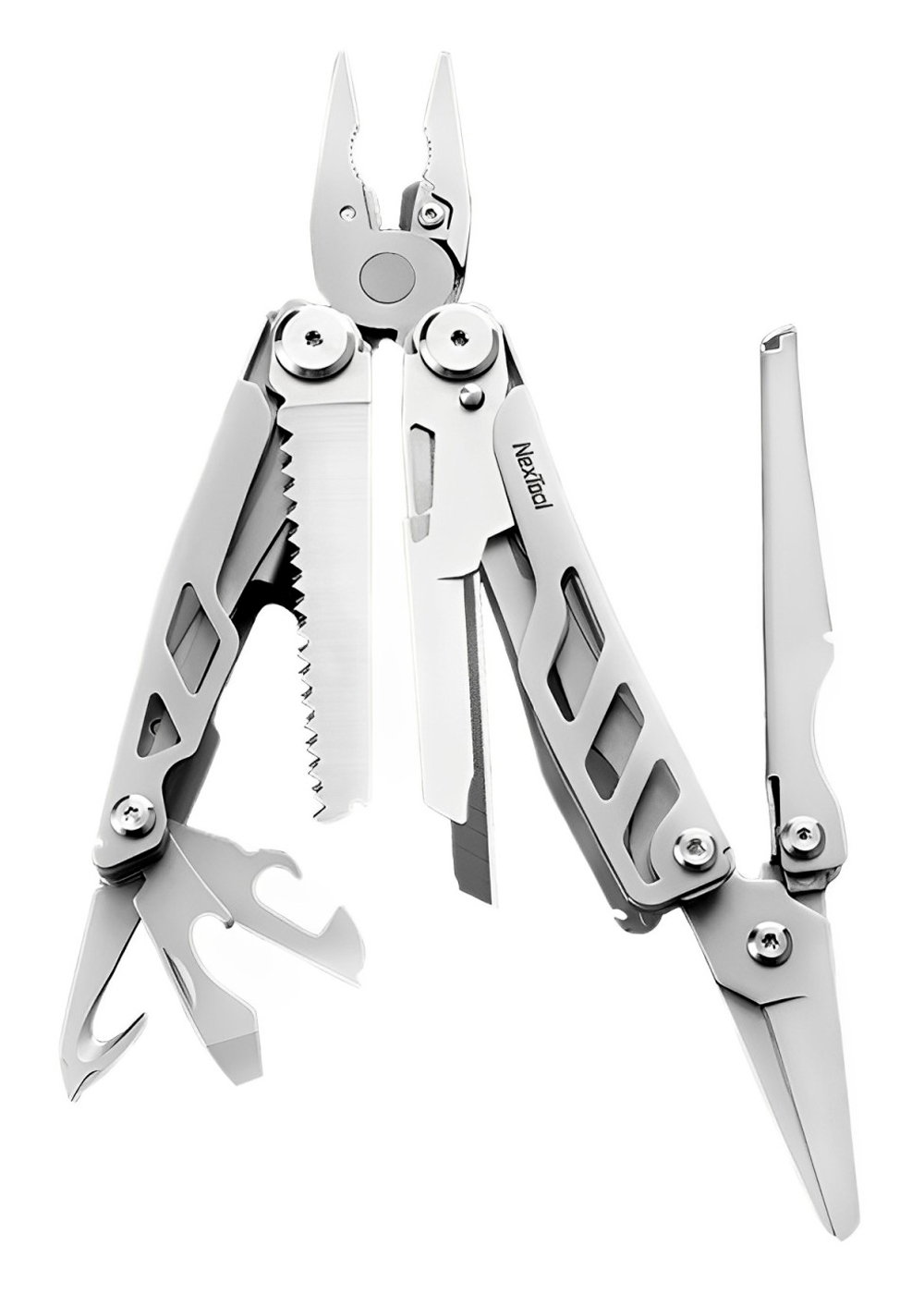 Xiaomi NexTool Flagship Pro Multi Tool (NE20232) - компактный и эргономичный мультитул из нержавеющей стали, который включает в себя 16 инструментов. Многофункциональный инструмент объединяет в себе: пассатижи, плоскогубцы с игольчатым наконечником, канцелярский нож, пилу, кусачки, кусачки для многожильной проволоки, сменный резак жесткой проволоки, линейку, ножницы, стеклобой, открывалку для бутылок, открывалку для консервных банок, шлицевую отвертку, крестовую отвертку, инструмент для зачистки проводов от изоляции и крюкорез. Длина инструмента в сложенном виде составляет всего 11 сантиметров.