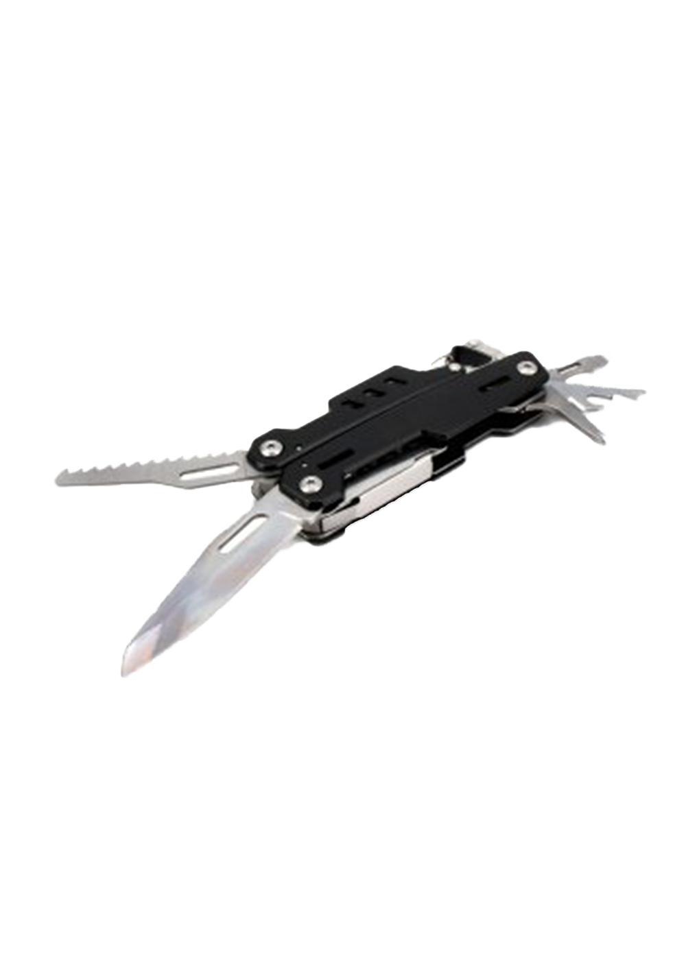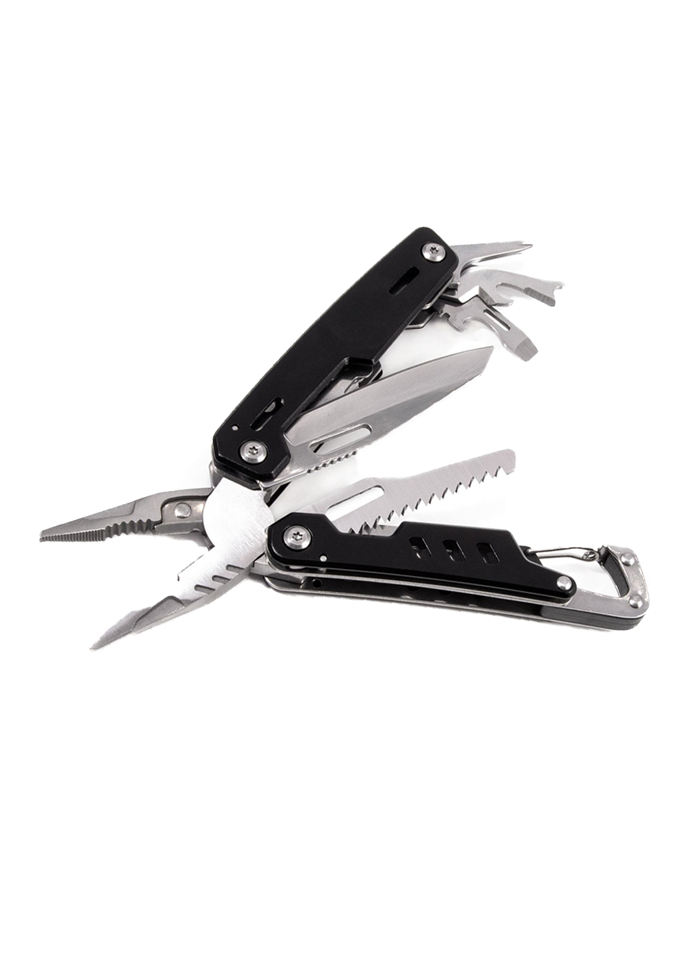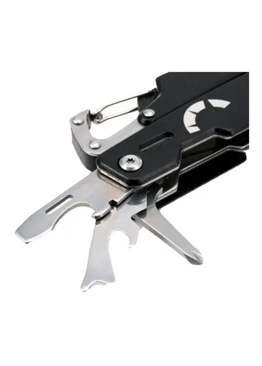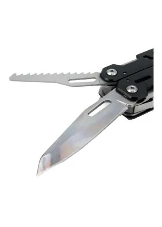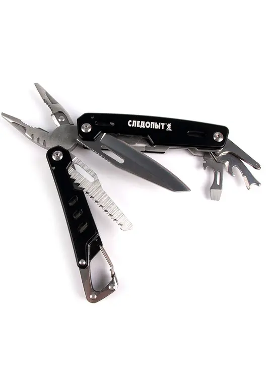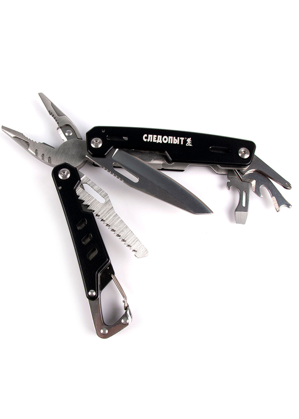Мультитул «Следопыт-EXPLORER» - набор из 11 предметов профильного или повседневного инструмента, заключенный в одном компактном корпусе. Имеет все необходимые инструменты, которые могут понадобиться на отдыхе и в быту. Набор инструментов изготовлен из коррозионностойкой жаропрочной стали 420. Особая структура стали придает изделиям высокую твердость, лезвия хорошо точатся и устойчивы к повреждениям. Армированный чехол для крепления на поясном ремне сохранит мультитул в чистоте и защитит от неблагоприятного воздействия внешней среды. Мультитул «СЛЕДОПЫТ-EXPLORER» удобен в использовании, имеет высокое качество и стильный дизайн. В комплект мультитула входят: • Нож • Пила • Кусачки • Карабин • Острогубцы • Консервный нож • Плоская отвертка • Пассатижи • Отвертка крестообразная • Открывашка для бутылок • Инструмент для зачистки проводов Вес – 217 г. Размер – 105*42*18 мм. Материалы – нерж.сталь 420, алюминий. Материал режущей кромки плоскогубцев - инструментальная сталь. Компектация: мультитул, чехол армированный.