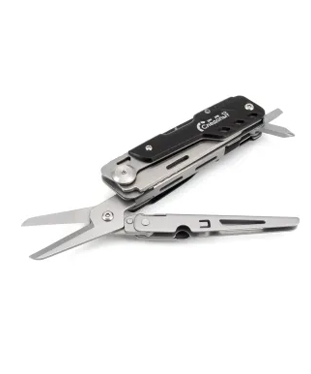 Мультитул «СЛЕДОПЫТ Pro» — это многофункциональный инструмент, который включает в себя 6 основных предметов, необходимых для выполнения различных задач. Он оснащён специальным механизмом разделения корпуса, что позволяет использовать каждый предмет отдельно. Ножницы, входящие в состав мультитула, имеют полноразмерную конструкцию и могут быть использованы для резки различных материалов, таких как ткань, бумага или провода. Нож также является полноразмерным и подходит для нарезки продуктов, открытия упаковок и других бытовых нужд.