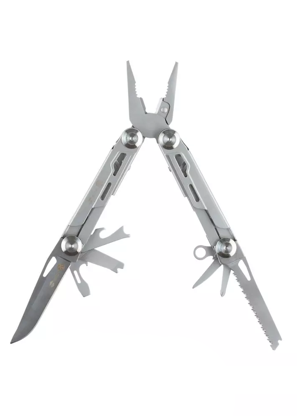 ХАРАКТЕРИСТИКИ: Материал инструментов: нержавеющая сталь 2Cr13 Материал рукояти: нержавеющая сталь Длина: 104 мм Ширина: 45 мм Вес: 235 г В комплекте: чехол из синтетического материала Упаковка: складная картонная коробкаМНОГОФУНКЦИОНАЛЬНЫЙ ИНСТРУМЕНТ STINGER С НАБОРОМ ИЗ 12 ФУНКЦИЙ: 1. Острогубцы 2. Пассатижи 3. Кусачки 4. Лезвие большое 5. Отвёртка крестовая 6. Отвёртка шлицевая 7. Открывалка для бутылок 8. Консервный нож 9. Пила 10. Инструмент для снятия изоляции 11. Шило 12. Стропорез ХАРАКТЕРИСТИКИ: Материал инструментов: нержавеющая сталь 2Cr13 Материал рукояти: нержавеющая сталь Длина: 104 мм Ширина: 45 мм Вес: 235 г В комплекте: чехол из синтетического материала Упаковка: складная картонная коробка