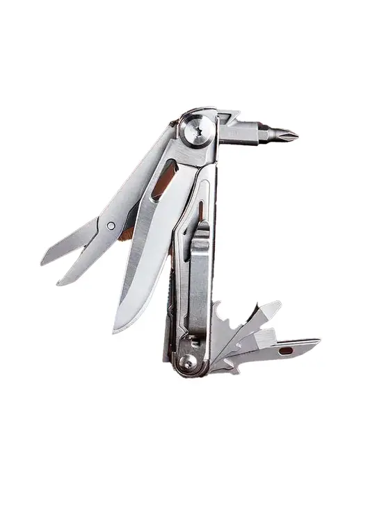 Легкий, компактный и функциональный складной инструмент для различных сценариев использования. Универсальность применения, прочные материалы, оптимальная твердость стали, компактность, надежность конструкции, практичность в использовании. Список инструментов: складной нож, крестовая отвертка, шлицевая отвертка (малая), шлицевая отвертка (большая), консервная открывалка, клипса на ремень, шило (пробойник), ножницы.