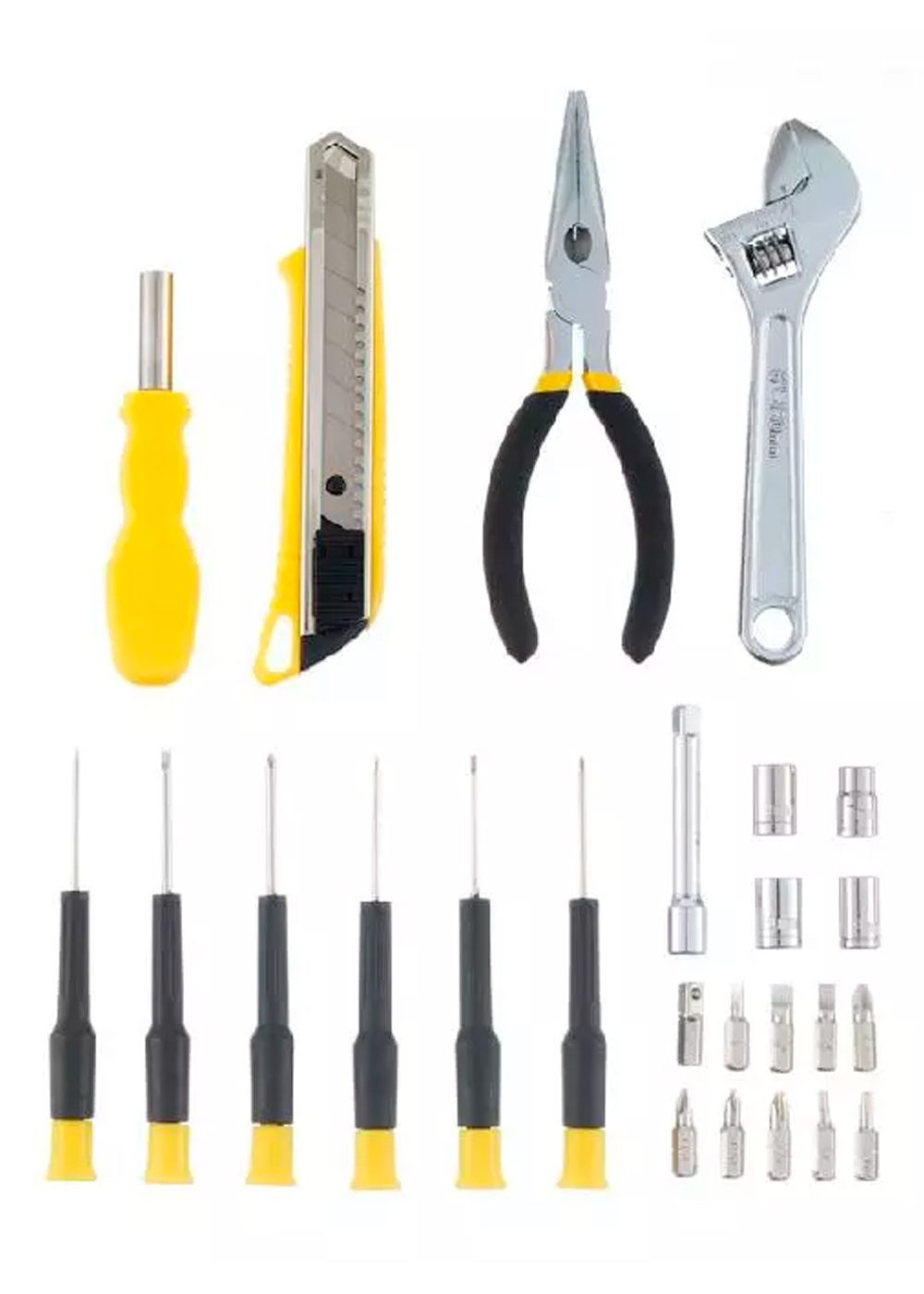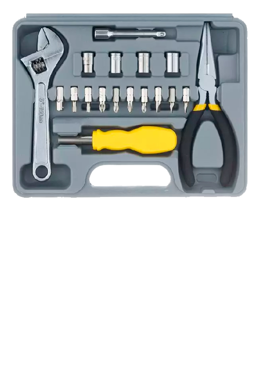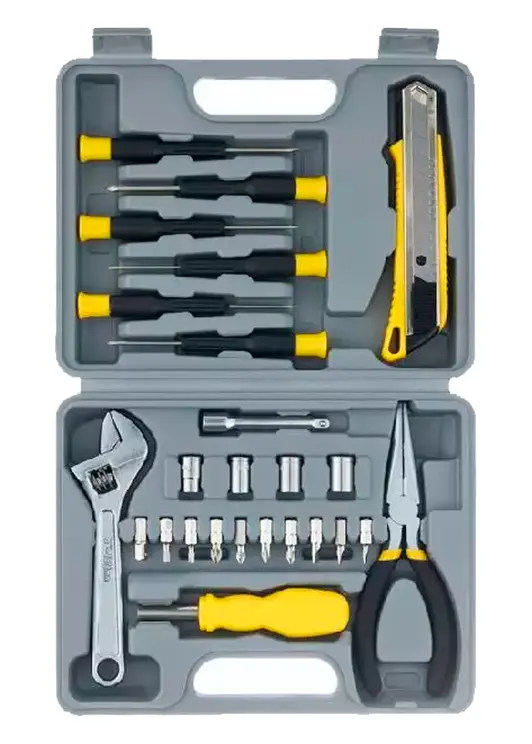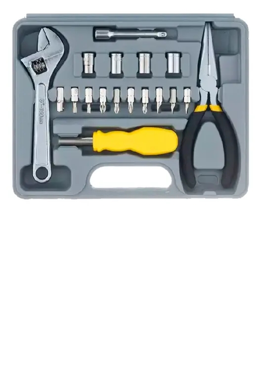 Набор инструментов Stinger состоит из 25 предметов и поставляется в пластиковом кейсе размером 230x180x50 мм. Инструменты выполнены в сером цвете. В набор входят различные виды отвёрток, плоскогубцы, кусачки, ключи, биты и другие инструменты, которые могут пригодиться в быту или при мелком ремонте.Характеристики: