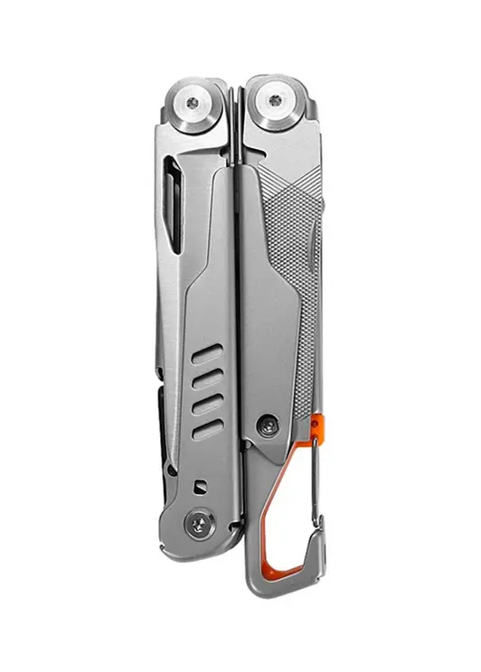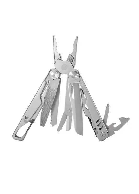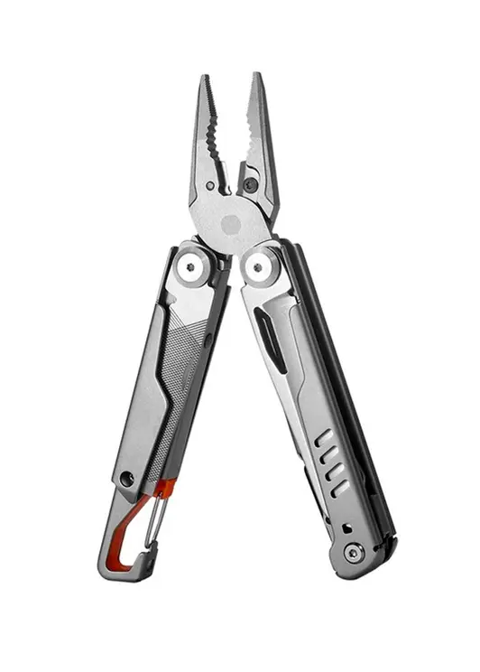Профессиональный многофункциональный инструмент для тактических и повседневных задач. Список инструментов: Обычный нож, Серрейторный нож, Открывалка для консервов, Ножницы, Линейка, Напильник, Плоскогубцы, Кусачки, Отвертка плоская малая, Отвертка плоская средняя, Отвертка крестовая малая, Пила по дереву, Карабин для подвеса веревки, Клипса для ношения на поясе.