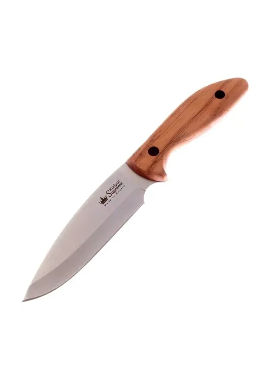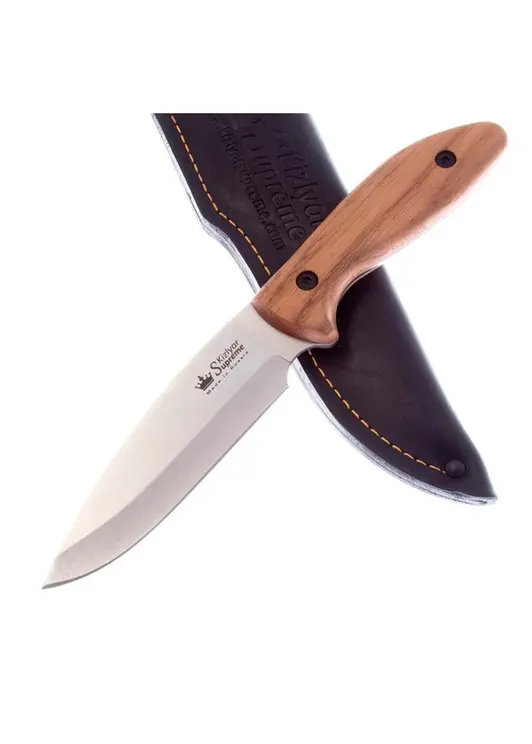 Туристический нож Fortuna AUS-8 с обработкой StoneWash и рукоятью из кавказского ореха — универсальный инструмент для активного отдыха и хозяйственных работ. Клинок из японской стали AUS-8 с твёрдостью 57-59 HRC имеет длину 131 мм и толщину обуха 2,4 мм, что обеспечивает отличные режущие свойства при работе с продуктами, разделке дичи и рыбы. Эргономичная рукоять из натурального ореха обеспечивает надёжный хват при длительной работе, а фирменная азотная закалка клинка гарантирует высокую прочность и износостойкость. В комплект входят кожаные ножны со свободным подвесом для удобного ношения. Общая длина ножа 246 мм при весе 142 грамма делает его практичным инструментом для повседневного использования.