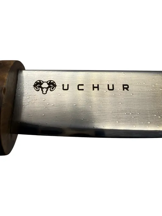 Нож Якутский UCHUR сталь ХВГ, рукоять Карагач, ножны кожа, средний (мастер Билюкин Сарыал)