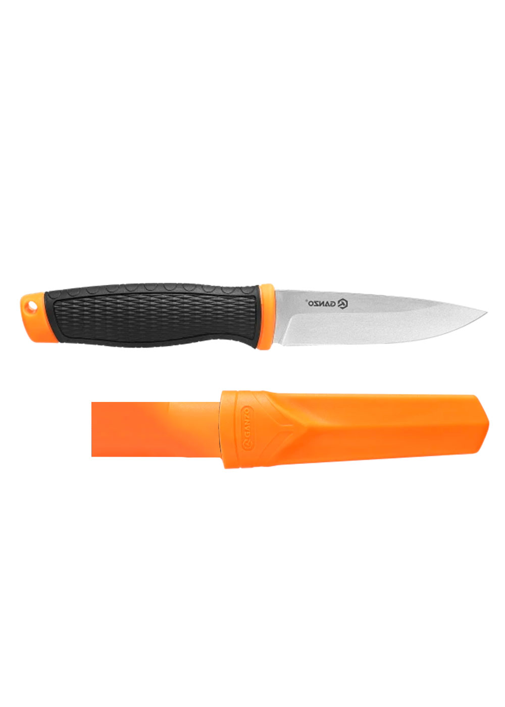 Нож Ganzo G806 с черным клинком и оранжевыми вставками на рукоятке. Лезвие изготовлено из нержавеющей стали 440С и имеет твердость 58 HRC. Рукоять выполнена из стеклотекстолита G10 и имеет эргономичный дизайн. Нож оснащен замком Axis для безопасного использования. Общая длина составляет 22,4 см, длина клинка - 9,8 см, толщина клинка - 3,5 мм. Вес ножа - 135 г.