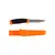Нож хорошо сбалансирован и отлично лежит в руке, благодаря эргономичной рукояти, изготовленной из прорезиненного пластика темных тонов. Слегка изогнутая форма рукояти, а также насечки и тисненная надпись Morakniv на ее поверхности, позволяют надежно удерживать нож в руке. Нож укомплектован пластиковыми ножами с клипсой для крепления ножа на пояс.