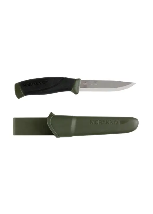 Нож Morakniv Companion MG (S) в цвете хаки — универсальный туристический инструмент с клинком из нержавеющей стали Sandvik 12C27 твёрдостью 56-58 HRC, обеспечивающей отличные режущие характеристики и устойчивость к коррозии. Клинок длиной 103 мм и толщиной 2,5 мм имеет форму Drop Point, удобную для различных работ. Рукоять выполнена из прорезиненного пластика в камуфляжном цвете хаки, обеспечивающего надёжный хват даже влажными руками. Модель комплектуется пластиковыми ножнами цвета хаки с поясным креплением. Общая длина ножа — 218 мм, вес — 116 г. Нож подходит для кемпинга, рыбалки, охоты и повседневных задач, отличается неприхотливостью в обслуживании и высоким качеством исполнения.
