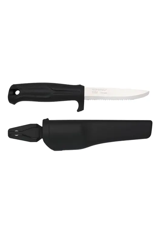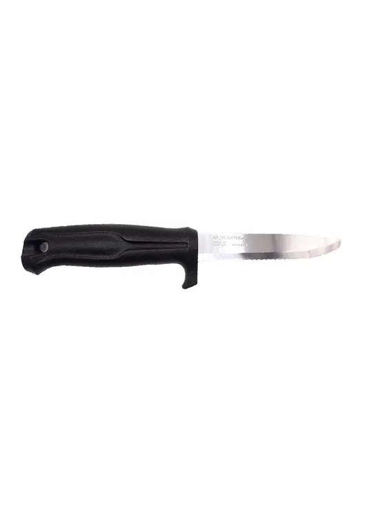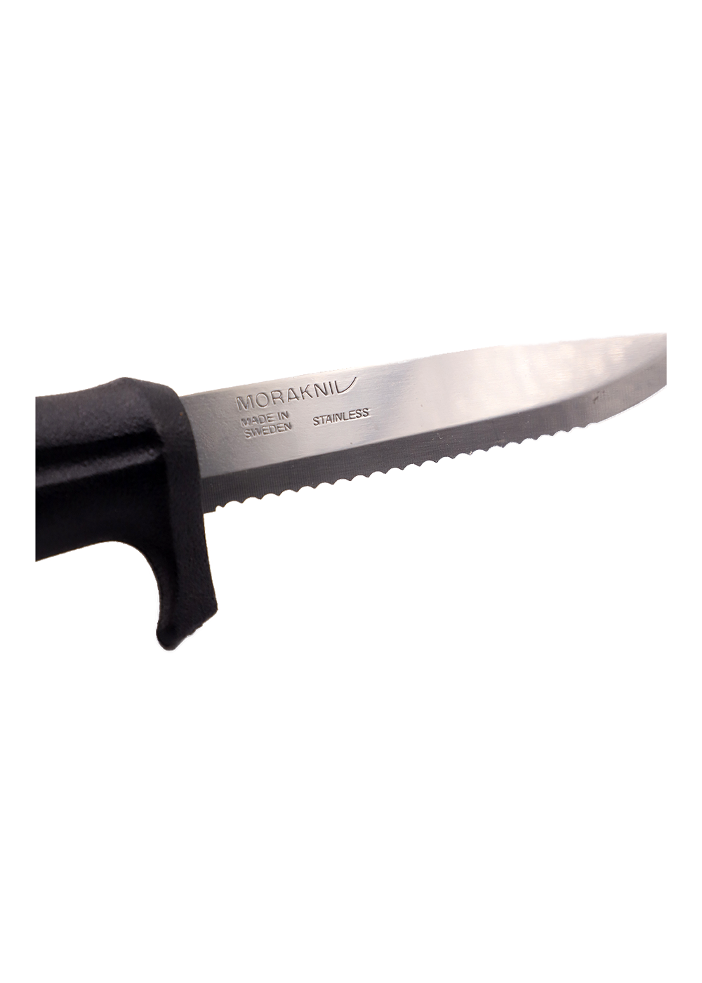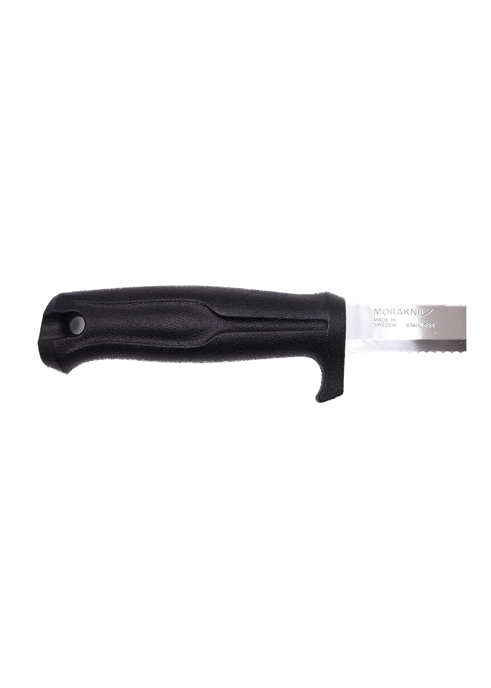Нож Morakniv Marine Rescue 541 — специализированная модель для работы в морской среде с серрейторной заточкой клинка из нержавеющей стали Sandvik твёрдостью 58 HRC. Клинок длиной 91 мм и толщиной 2 мм имеет закруглённый наконечник для безопасного использования. Рукоять выполнена из прочного термопластика с эргономичной формой, защищающей пальцы от скольжения к лезвию. Общая длина ножа составляет 198 мм, вес — 93 г. Модель комплектуется пластиковыми ножнами с поясным креплением. Серрейторная заточка идеально подходит для разрезания канатов и рыболовных сетей, а влагостойкие материалы делают нож незаменимым помощником для моряков и рыбаков