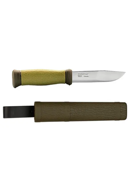 Нож Morakniv 2000 (он же Sportkniv Outdoor 2000) представляет собой классическую модель нескладного туристического ножа с геометрической формой клинка, близкой к drop-point. Общая длина ножа составляет 218 мм, из которой почти половина приходится на полированное лезвие прямой заточки.