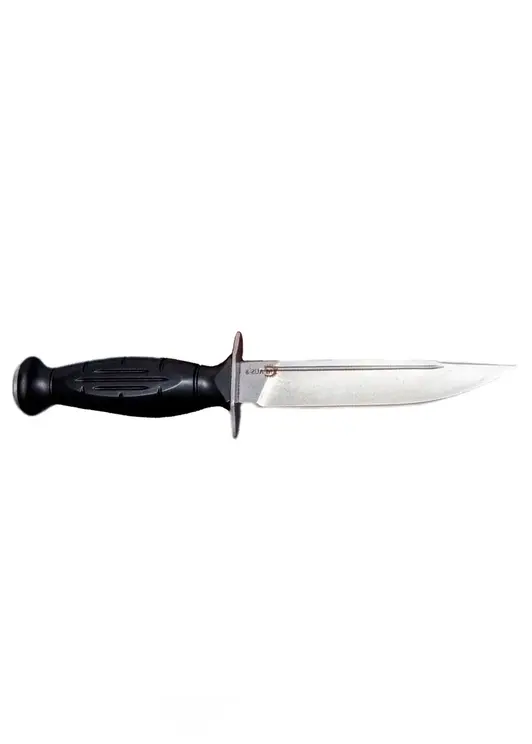 Нож НКВД сделанный вручную мастерами кузницы Сёмина из города Ворсма. При ковке клинка использовалась сталь AUS 8, твердость которой составляет 54 - 56 HRC. Для изготовления рукояти используется пластик. Фирменный чехол-ножны из натуральной кожиНож заточен и укомплектован сертификатом, в котором указано, что изделие не является холодным оружием.