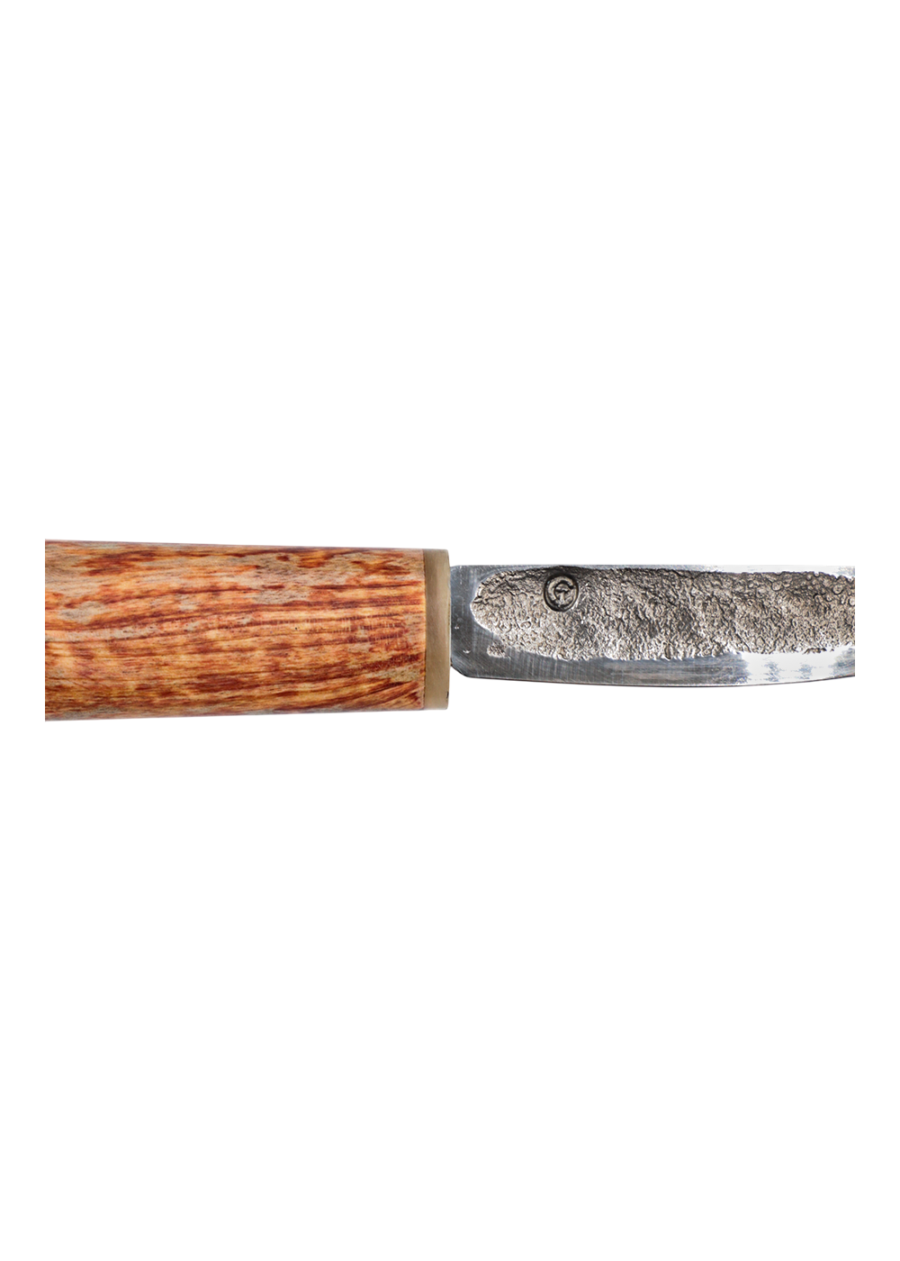 - Красота и душа карельской березы: Каждая рукоять уникальна благодаря природному узору древесины. Это теплый, живой материал, который делает нож по-настоящему «своим».