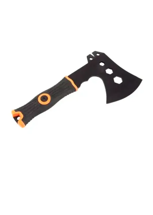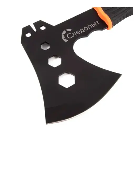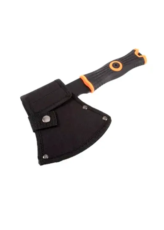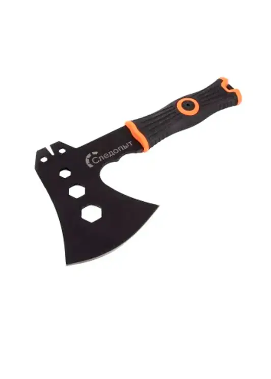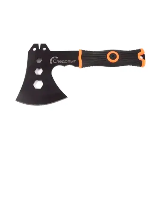 Топор туристический «Следопыт»– универсальный походный топор стильного черного цвета с обрезиненной рукоятью для более удобного захвата рукой. Идеально подходит для рубки сучьев, веток и небольших бревен в походе. В комплекте предусмотрен чехол из кордуры для лезвия.