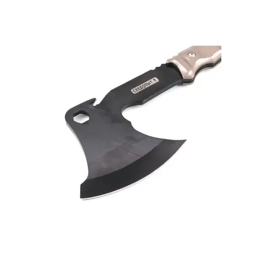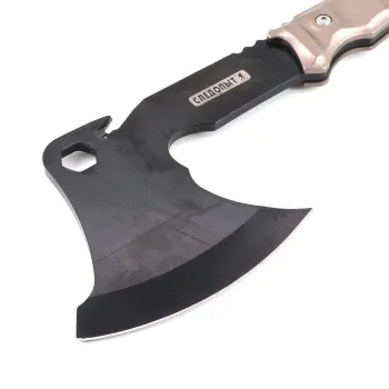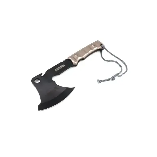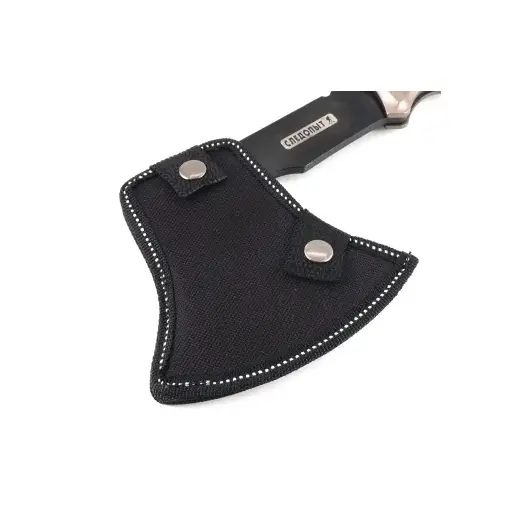 Топор туристический «Следопыт» в чехле – удобный стальной топор с металлической рукояткой и отверстием под петлю. Топор оборудован стропорезом и гаечным ключом. В комплекте предусмотрен чехол из кордуры для лезвия.