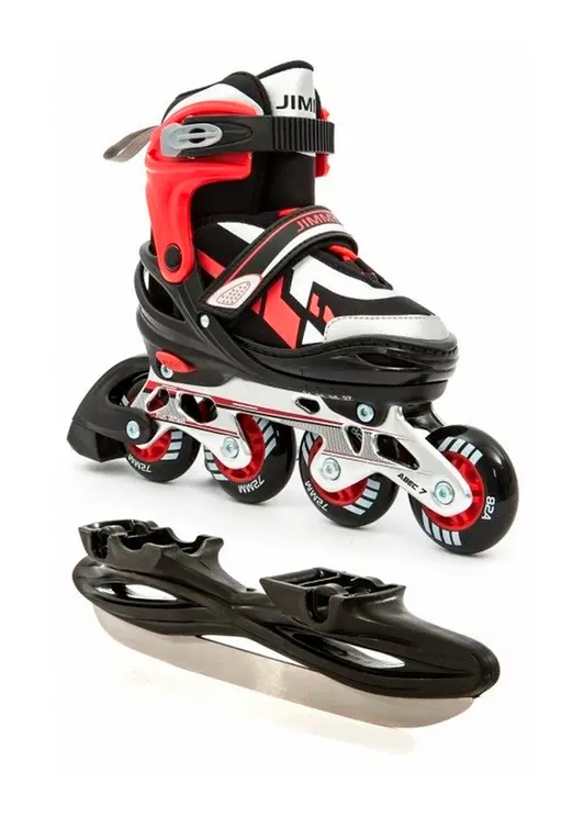Коньки раздвижные + ролики Calambus Jimmy COMBO черный/красный — универсальная модель для активного отдыха. Коньки раздвижные + ролики Calambus Jimmy COMBO черный/красный — это практичное решение для активного отдыха, которое позволяет экономить на покупке отдельных роликов и коньков, а также обеспечивает возможность использования продукта на протяжении нескольких сезонов благодаря системе раздвижения. Стильный дизайн в черно-красном цвете, раздвижная система для растущей ноги, подходит как для мальчиков, так и для девочек.