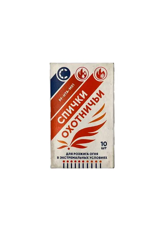 Спички охотничьи «СЛЕДОПЫТ-ЭКСТРИМ», длительного горения предназначены для розжига костров в экстремальных походных условиях или в условиях экспедиций. Также подойдут для людей, которые отправляются в лес, на охоту или на рыбалку. Спички изготовлены из прессованной бумаги, пропитанной горючим составом с серной головкой. Уложены в коробок в виде 2-х лент по 5 шт.