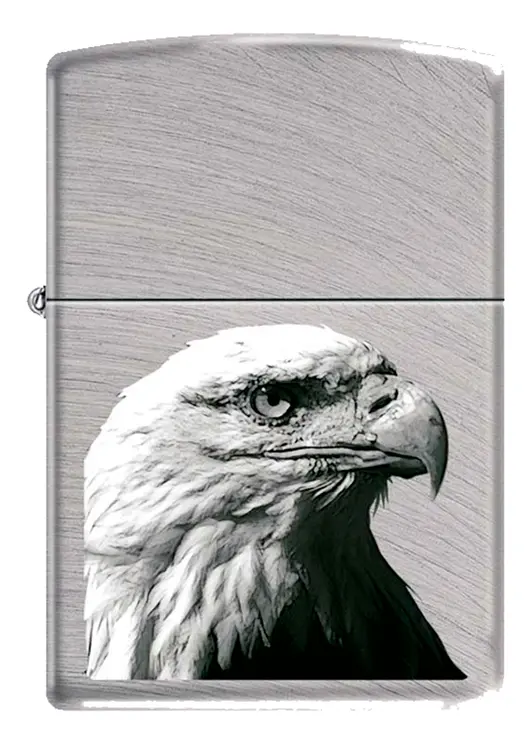 Зажигалка ZIPPO «Орёл» с покрытием Chrome Arch изготовлена из латуни и стали и имеет матовую серебристую поверхность. На фронтальной стороне изображён орёл. Зажигалка обладает пожизненной гарантией и работает на кремниевом топливе. Размеры изделия составляют 3,81 х 1,27 x 5,72 см.Характеристики: