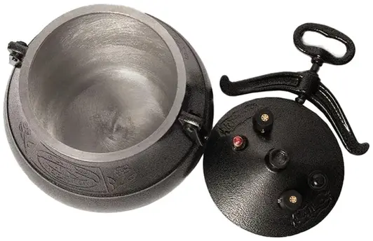 У афганских казанов крышка плотно прилегает к основанию и затем прикручивается, что не позволяет пару и теплу выйти наружу.