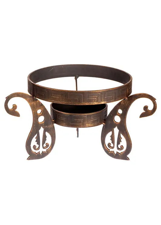 - Размеры: Высота — 17 см, диаметр верхнего кольца — 23 см, диаметр нижнего кольца (под угли) — 12,5 см