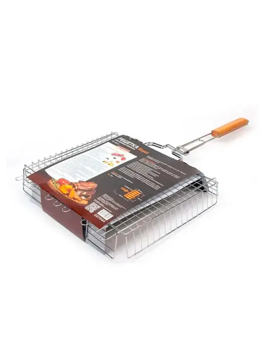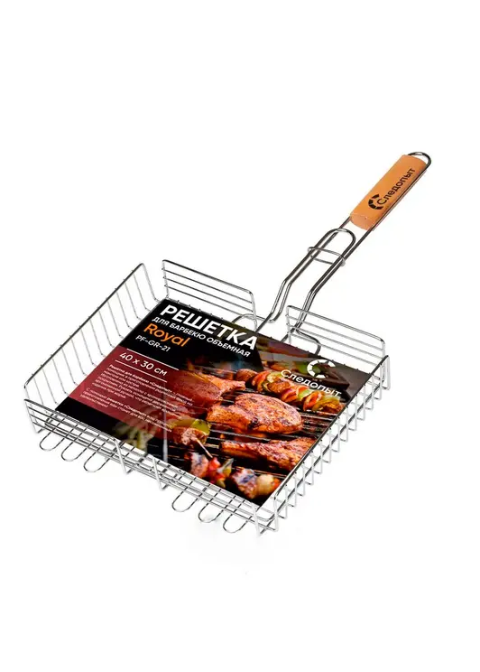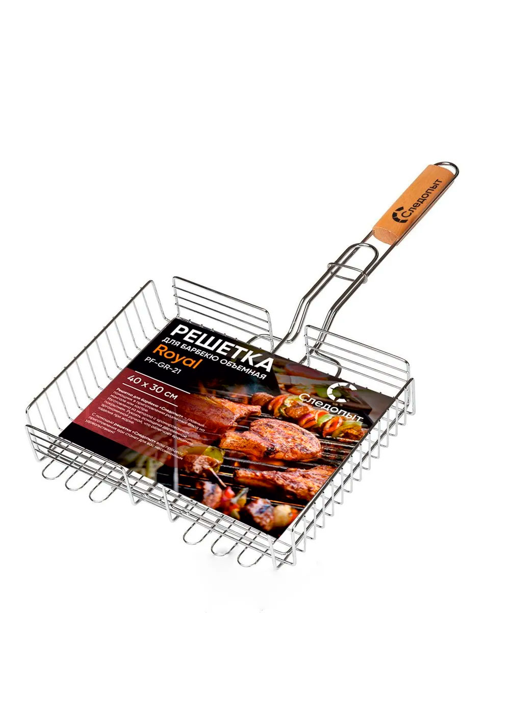 Решетка для барбекю “Следопыт Royal” 40×30×7 см — незаменимая вещь для любителей активного отдыха на свежем воздухе и путешественников на автомобиле. Изготовлена из прочной и надежной нержавеющей стали, решетка устойчива к высоким температурам и коррозии. Удобная ручка позволяет легко переворачивать продукты при приготовлении на огне или углях, а компактный размер и малый вес делают решетку идеальным выбором для семейных пикников или автомобильных поездок.