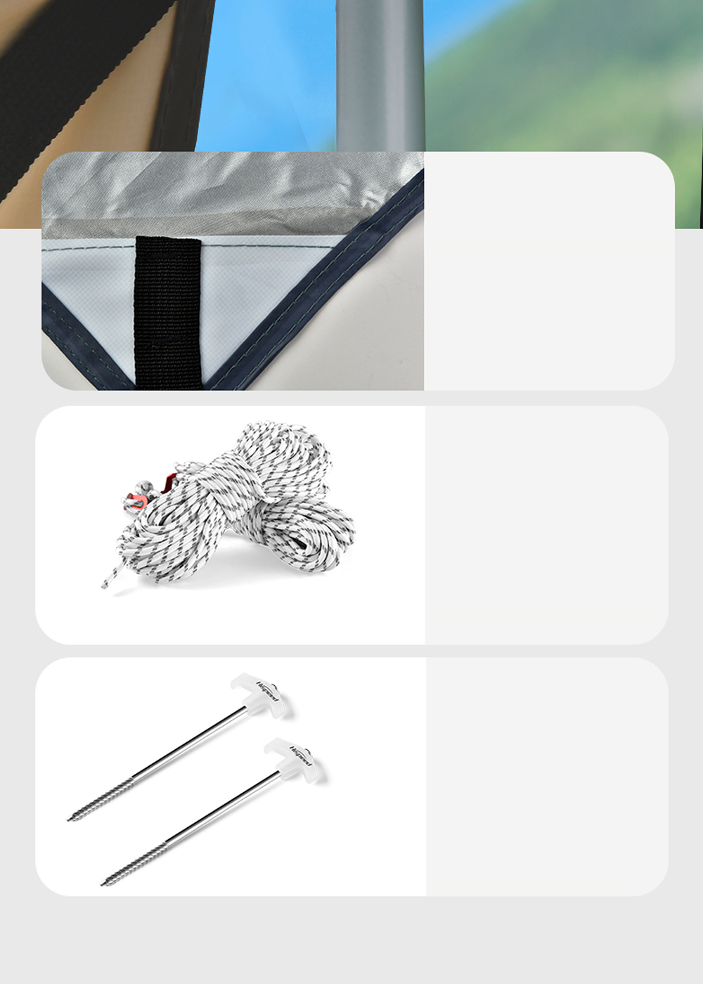- Расширенная комплектация – больше колышков и оттяжек для надежной установки