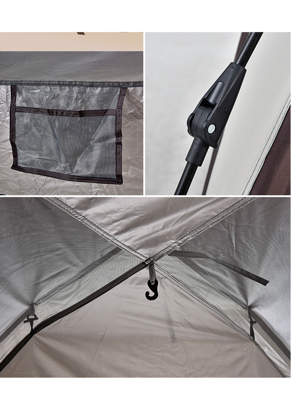 КонструкцияПалатка устанавливается мгновенно благодаря полностью автоматическому пружинному кронштейну, раскрывается всего за три секунды!