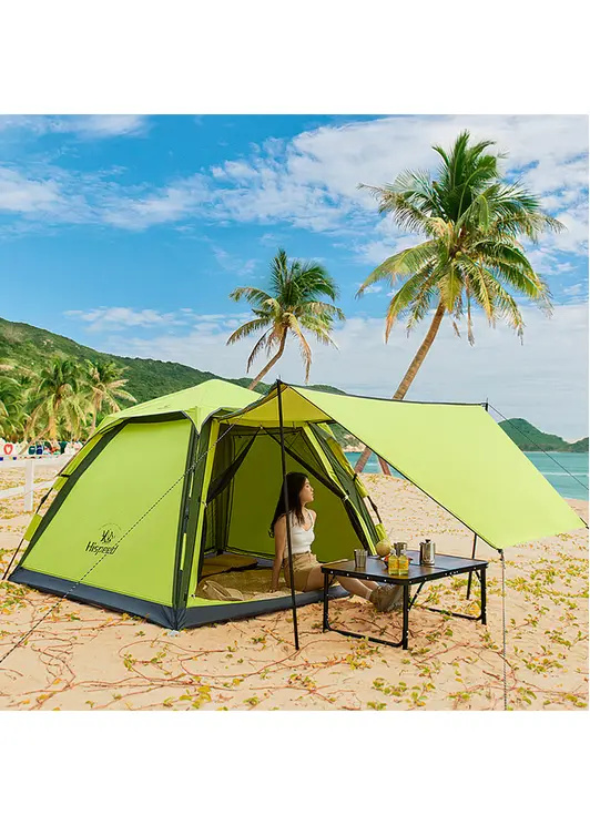 Палатка Hispeed ZP-24 - это автоматическая кемпинговая модель в зелено-коричневой цветовой гамме, предназначенная для комфортного размещения группы до 4 человек.