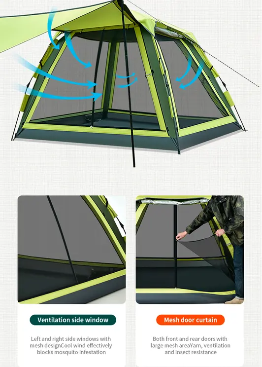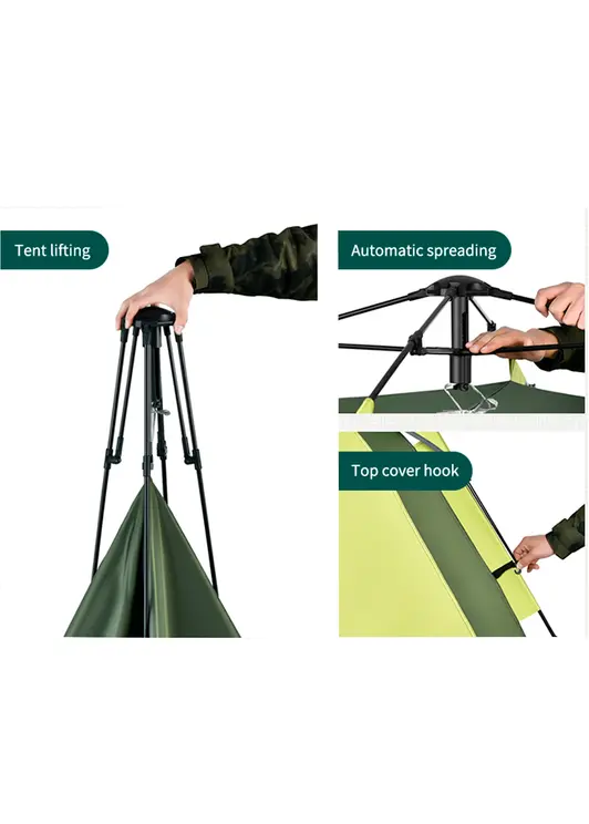 Зелено-коричневая расцветка палатки обеспечивает хорошую маскировку в природной среде и создает уютную атмосферу внутри. Автоматическая система установки позволяет развернуть палатку буквально за минуту, а прочные материалы и продуманная конструкция обеспечивают надежную защиту в различных погодных условиях. Это отличный выбор для тех, кто ценит комфорт и удобство в организации отдыха на природе.