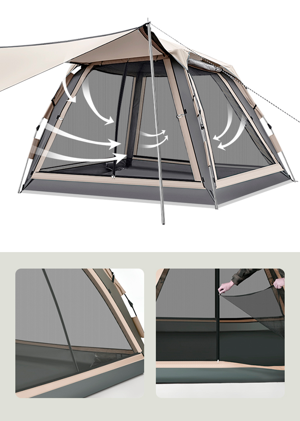 Каркас: Прочные и легкие алюминиевые стойки, обеспечивающие устойчивость даже при сильном ветре.
