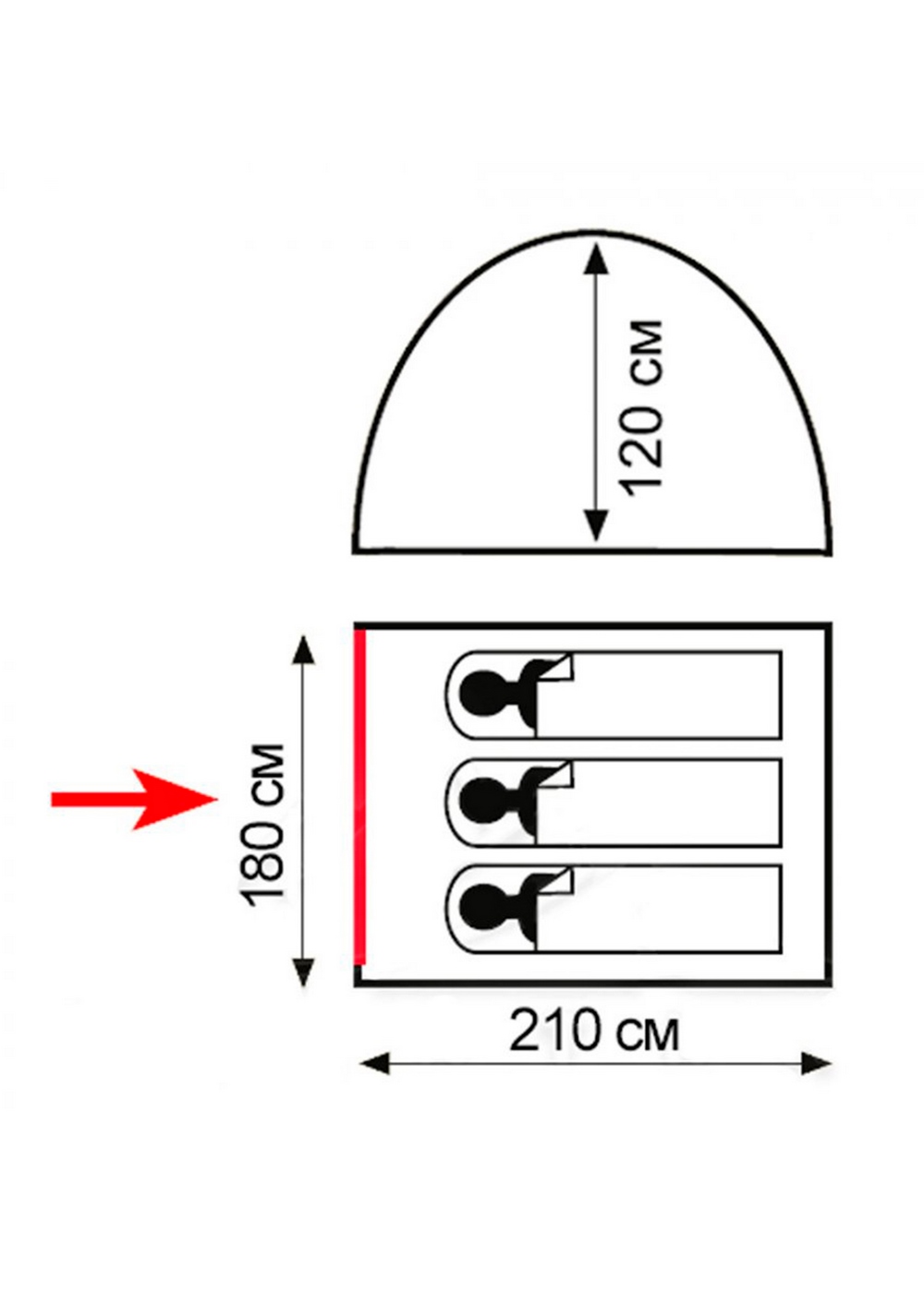 - Тент: 100% полиэстер Taffeta 75D / 190T PU 2000 мм в. ст.