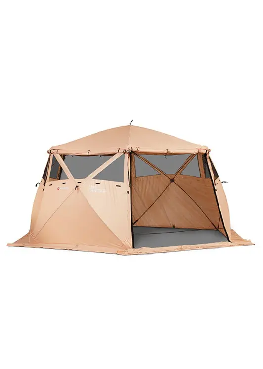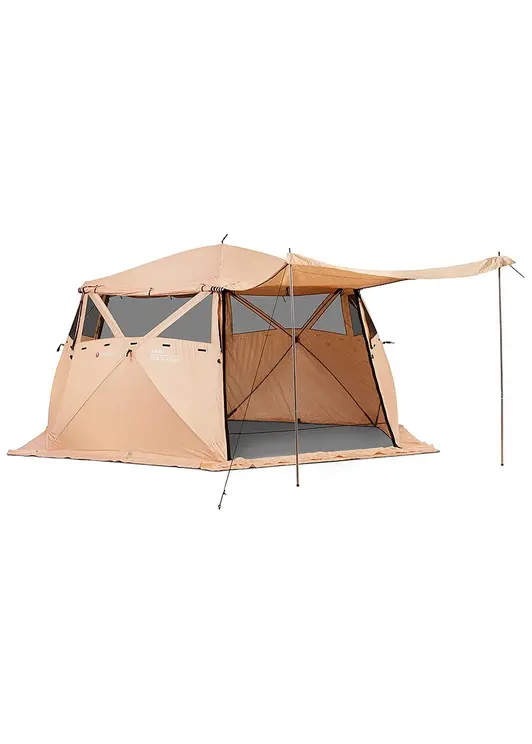 Летняя кухня-шатер Higashi Yurta Camp Sand II предназначена специально для комфортного отдыха на природе и для охоты при любой погоде. Кухня прекрасно переносит как жаркое солнце, так и сильный проливной дождь. Благодаря конструкции, отлично защищает от сильных порывов ветра. Имеет приятный песочный окрас (Sand). Кухня-шатер оснащена дополнительными усилениями по углам и по центральному потолочному хабу. Имеет выносные стойки для двух входов для установки солнцезащитного козырька, что создает особый комфорт на отдыхе с семьей или компанией друзей.