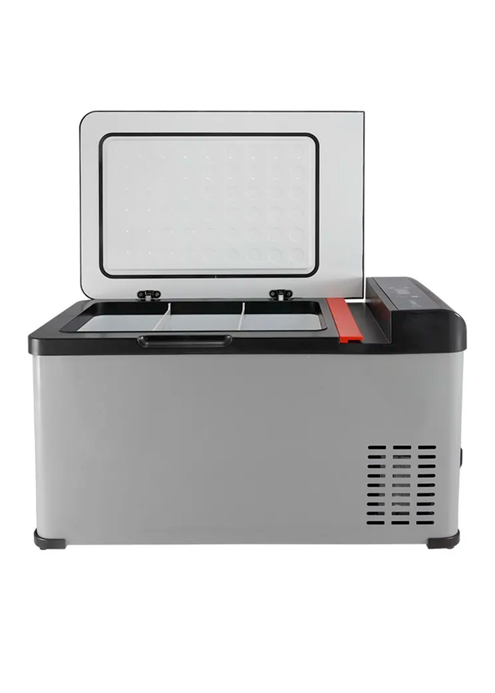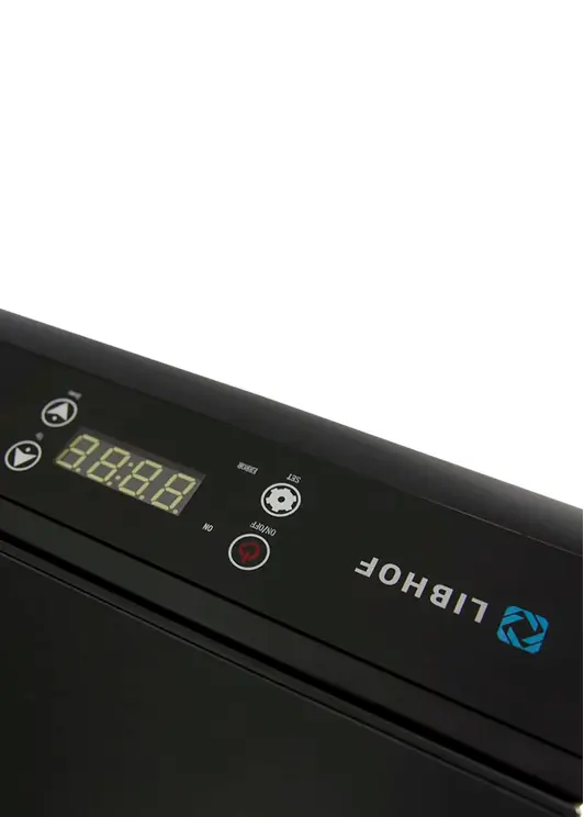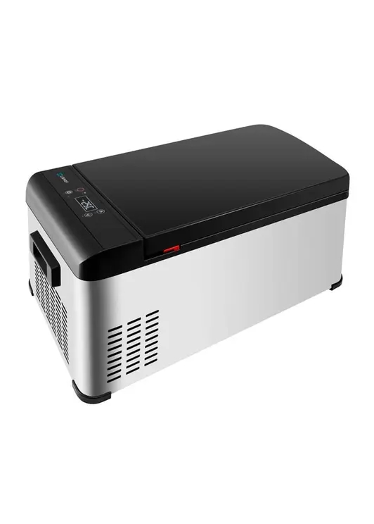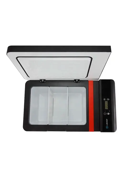 Libhof Q-18 — компактный компрессорный автомобильный холодильник, самая маленькая модель во всех линейках. Надёжная металлическая скоба на корпусе предназначена для фиксации на пассажирском сиденье с помощью ремней безопасности.