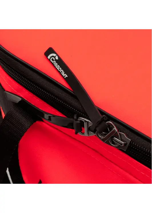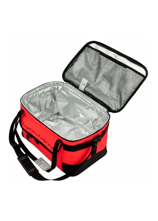 Сумка изотермическая «Следопыт – Red Line» предназначена для длительного сохранения продуктов свежими в путешествии, на пикнике и дома. Дно и крышка обработаны кедером по периметру. На передней части расположен объемный накладной карман на липучке, с сублимационной печатью. Ручки пришиваются к передней и задней стенке по всей длине стенок до самого основания, чтобы исключить любую возможность разрыва. На ручках закреплен подручник овальной формы. По боковым сторонам сумки пришит плечевой регулируемый по длине ремень. На крышке изнутри присутствует карман из сетки на липучке. Подклад склеен на ультразвуке для герметичности швов. Внутри по верхней части сумки расположены клапаны, закрывающие молнию изнутри для максимальной сохранности климата внутри сумки. На дне закреплены накладки для предохранения ткани от истирания. Для более продолжительного сохранения холода рекомендуется дополнительно использовать специальные элементы холода.