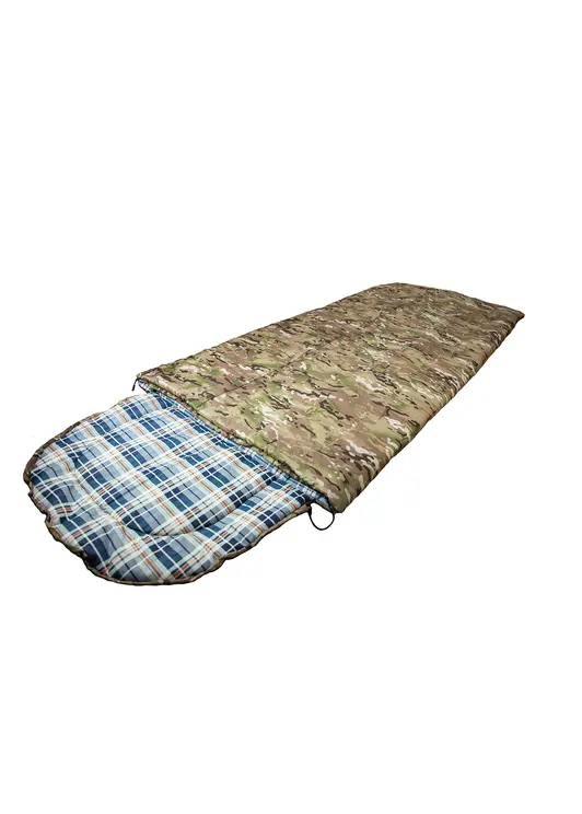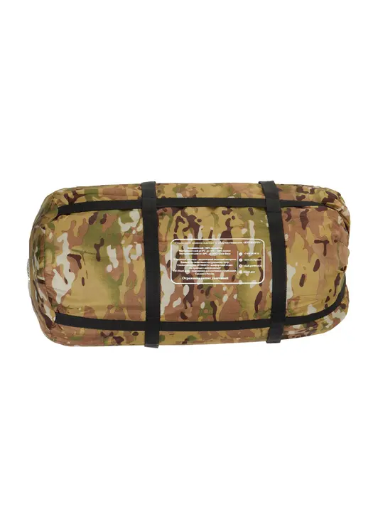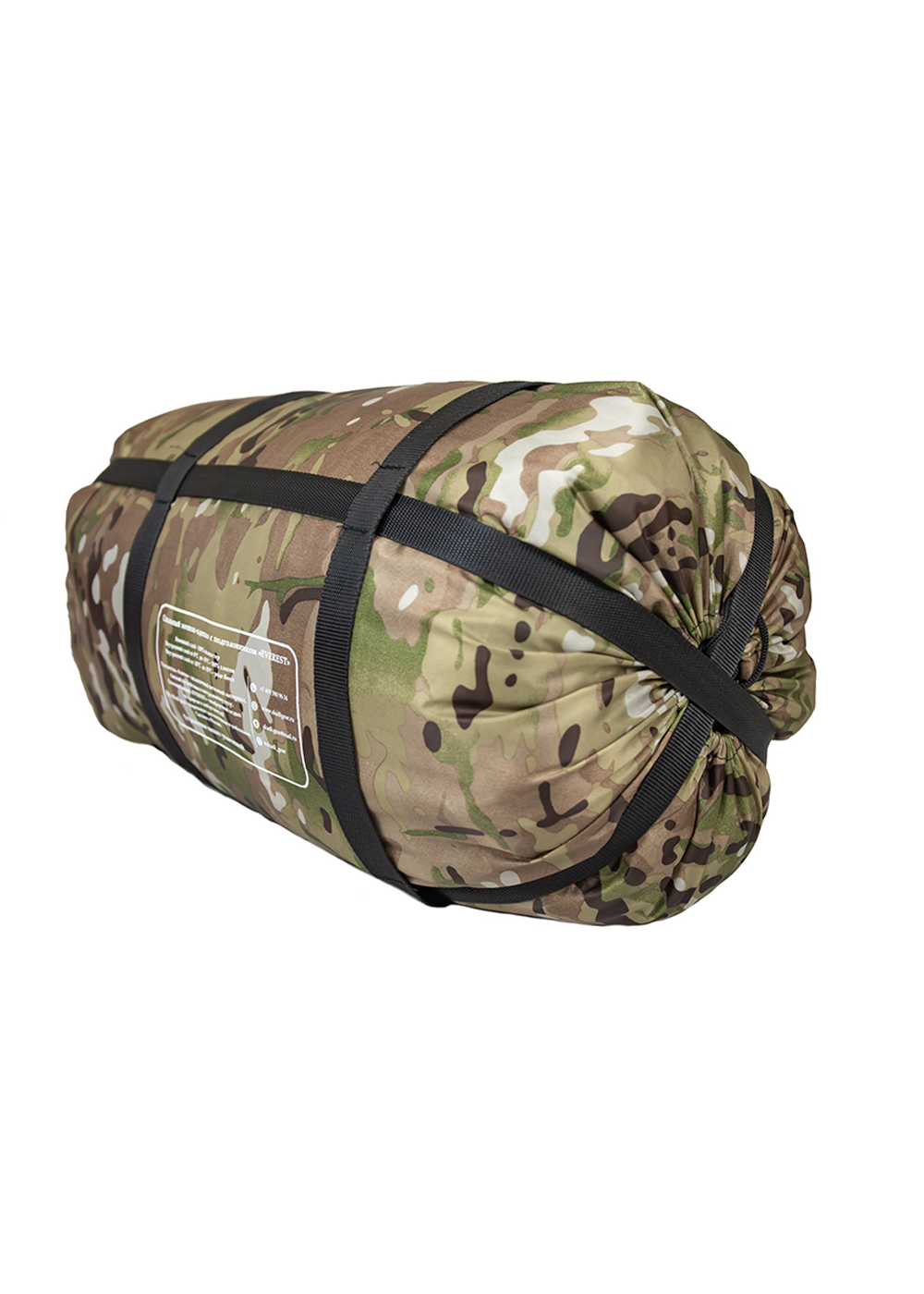 Спальный мешок «EVEREST» в расцветке Multicam рассчитан на низкие температуры до -25°C и изготовлен из прочного материала Оксфорд 240D PU 1000. Модель выполнена в формате одеяла с подголовником, который трансформируется в капюшон благодаря шнуру с фиксаторами. Внешний слой из полиэстера дополнен внутренней подкладкой из флиса Polar Fleece плотностью 180 г/м², а в качестве утеплителя используется синтетический материал Alaska плотностью 450 г/м². Конструкция предусматривает защиту от закусывания подкладки бегунком, удобный пуллер для застёгивания и компрессионные стропы для компактного хранения. Размеры мешка составляют 250×90 см, что обеспечивает комфортное размещение.