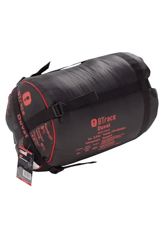 Спальный мешок Mega BTrace (левый, серый/синий) — отличный выбор для автомобильных и пеших путешествий в прохладное время года. Он обеспечивает комфорт и уют даже в морозные ночи.