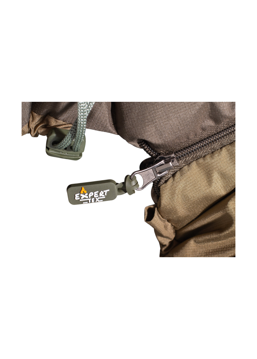 - В ногах спального мешка имеется дополнительный бегунок, предназначенный для обеспечения дополнительной вентиляции в жаркую погоду.