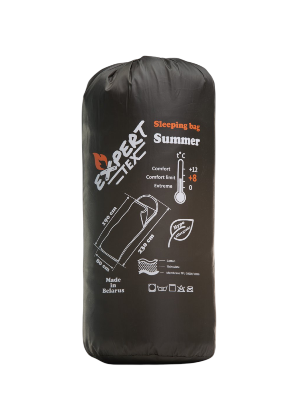Спальный мешок "Summer" представляет собой высококачественный продукт, который обеспечивает комфорт и защиту во время отдыха на природе. Он имеет удобные габариты в сложенном и разложенном виде и легкий вес, что делает его легким и удобным для переноски. Материалы верха и подкладки обеспечивают надежную защиту от внешних воздействий и приятный контакт с кожей. Искусственный пух, используемый в качестве наполнителя, дает надежное утепление и сохраняет свои качества даже при влажных условиях. Спальный мешок "Summer" пригоден для использования в температурных условиях от 8 до +12 градусов, что делает его идеальным выбором для весенне-летнего периода. Производство спального мешка "Summer" осуществляется компанией Expert-Tex из Беларуси и России, что гарантирует высокое качество и надежность продукта.