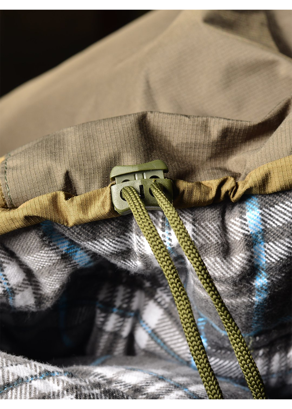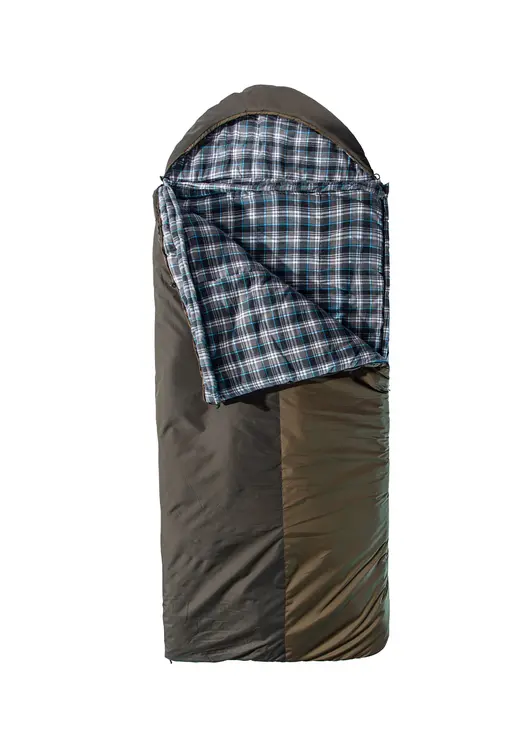 - Подголовник дополнительно снабжен увеличенным козырьком для более плотного стягивания, а сам спальник имеет увеличенные размеры;