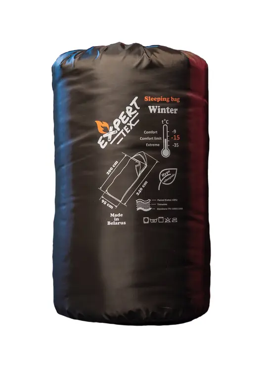 Спальный мешок Expert-Tex Winter - зимняя модель спальника для походов в условиях низких температур. Представляет собой большое одеяло, складывающееся пополам и закрывающееся на молнию. Молния в свою очередь с внутренней стороны защищена от продувания утепленной текстильной стропой. Отсутствие сквозных швов гарантирует тепло и комфорт при любой погоде. Подголовник и мешок оснащены стягивающим шнуром - утепленной кулиской, с помощью которой не только капюшон, но и спальник может быть утянут вокруг головы и по воротниковой зоне. Утепленный фланелевый воротник и валик, расположенный вдоль молнии, гарантируют защиту от попадания внутрь холодного воздуха.