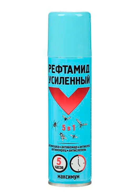 Репеллент «Рефтамид Экстра Максимум» — это усиленный препарат объёмом 150 мл, предназначенный для защиты от комаров, мокрецов, москитов, мошек, слепней, блох и таёжных и лесных клещей. Он содержит увеличенное количество действующего вещества — ДЭТА (10%), что обеспечивает более длительную и надёжную защиту до 5 часов.