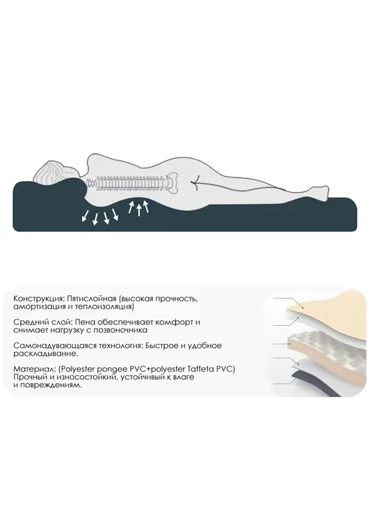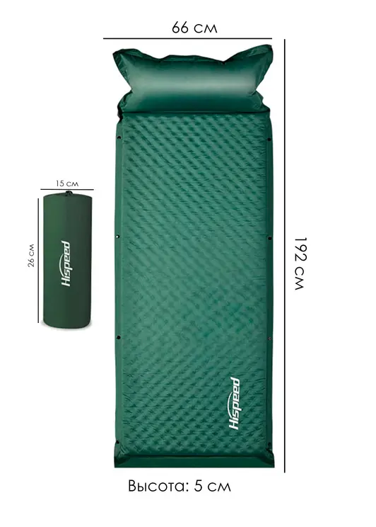 Зеленый самонадувающийся коврик Hispeed QDC-09 размерами 192x66x5 см станет отличным выбором для комфортного сна в походе или путешествии. Благодаря автоматическому надуванию, вы сможете быстро подготовить удобное спальное место. Антискользящее покрытие предотвращает скольжение коврика во время сна, обеспечивая дополнительную безопасность.
