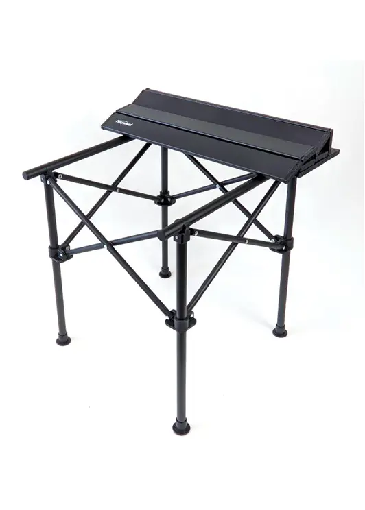 Столешница легко отсоединяется и скручивается в рулон, а ножки на кронштейнах мгновенно складываются одним движением. Полностью разборная система обеспечивает компактность – идеально для походов и пикников. Чехол для транспортировки и переноски в комплекте.